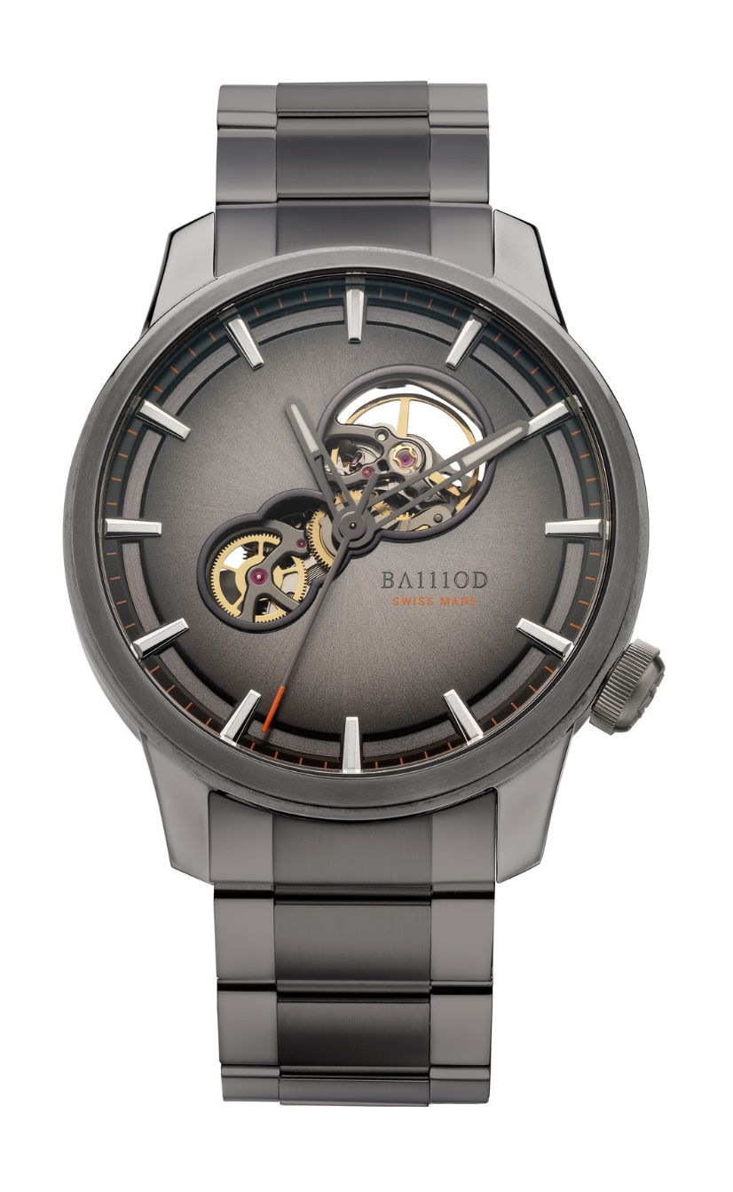 The ZEST leans sporty and bold with a gunmetal PVD case, anthracite dial accented by electric orange details, and a matching Saffiano leather strap with orange stitching. The AZUR takes a more classic route with a polished steel case, a rich blue dial, and a brown leather strap. Different in personality but united in spirit, both models bring fresh energy to BA111OD’s growing portfolio of approachable Swiss mechanical watches.