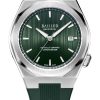 The 40mm stainless steel case is modern and versatile, with a 10-sided faceted bezel that adds a subtle architectural edge. The interplay of satin-brushed and polished surfaces gives it dimension, while the asymmetric sunray dial introduces texture and movement. Offered in four dial colors—Absolute Blue, Frost Blue, Forest Green, and Jet Black—each one draws inspiration from the Neuchâtel landscape, from alpine peaks to forested trails and the deep blue lake. A date window at 3 o’clock and BA111OD’s signature 4 o’clock crown complete the layout, paired with a choice of a sporty rubber strap or a more refined steel bracelet.