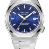 The 40mm stainless steel case is modern and versatile, with a 10-sided faceted bezel that adds a subtle architectural edge. The interplay of satin-brushed and polished surfaces gives it dimension, while the asymmetric sunray dial introduces texture and movement. Offered in four dial colors—Absolute Blue, Frost Blue, Forest Green, and Jet Black—each one draws inspiration from the Neuchâtel landscape, from alpine peaks to forested trails and the deep blue lake. A date window at 3 o’clock and BA111OD’s signature 4 o’clock crown complete the layout, paired with a choice of a sporty rubber strap or a more refined steel bracelet.