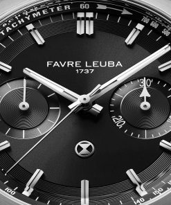 The dial, offered in blue, ice blue, green, dune, or black, shows the kind of detail that comes from serious watchmaking. A sunburst finish with over a hundred production steps gives it real depth, while the bi-compax layout at 9 and 3 o’clock adds balance and contrast. A tachymeter around the inner flange reinforces its sporting side, and rhodium-plated hands and indices with Super-LumiNova ensure clarity at a glance. At six o’clock, the raised Favre Leuba hourglass emblem provides a signature flourish that ties the design together.