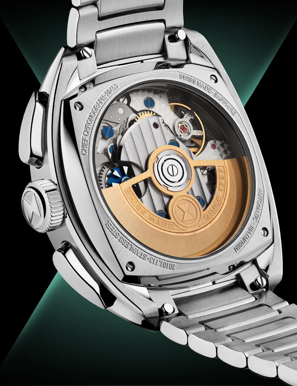 The dials remain the star of the Chief Chronograph. Each one undergoes more than a hundred production steps, combining sunburst, circular brushing, and ribbed contours to create depth and texture. This intricate process limits which colors can be executed with clarity and balance—making the new green and dune tones all the more impressive. The British Racing Green model channels the heritage of motorsport, with a shifting tone that glows bright in sunlight and deepens in shade. The Dune edition, by contrast, offers subtle warmth, pairing sandy hues with rose-gold accents for a refined and understated look.
