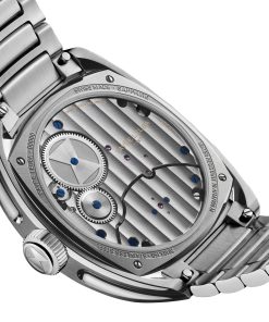 Inside the watch is the FL T01 movement, based on Chronode’s C502 calibre and fully re-engineered for Favre Leuba. The upper bridge of the tourbillon subtly references the Hourglass emblem and supports both the rehaut and small seconds dial. The 14.85 mm cage is finished with brushed and circular-grain surfaces, emphasizing the attention to detail. Additional elements like flame-blued screws and a decorated caseback reinforce the watch’s premium positioning.