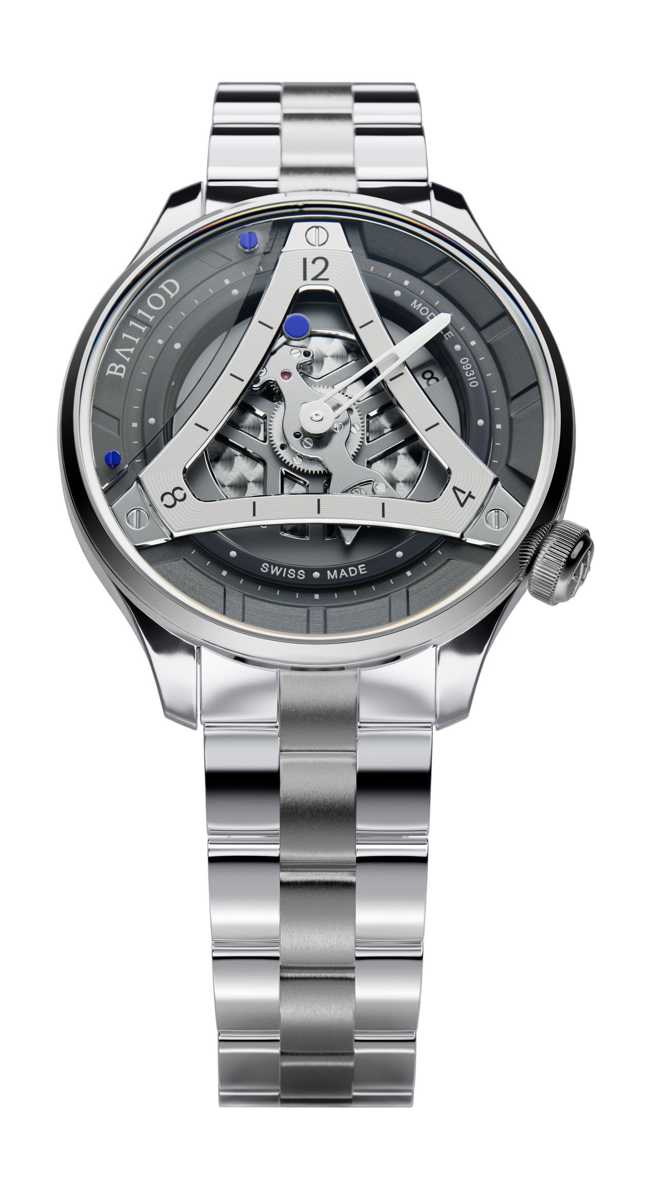 Among the newcomers is a steel version that echoes the original bestseller, a two-tone model in steel and yellow gold PVD, and two anthracite editions, one of which features a black diamond-set bezel. The hypnotic hour dot remains, gliding along its triangular route—slowing, accelerating, and repeating in a rhythm that feels more poetic than mechanical. As before, the movement is the work of Olivier Mory, the La Chaux-de-Fonds watchmaker behind many of BA111OD’s more technical achievements. The design remains under the eye of Liliane Murenzi, whose asymmetrical layering and blend of brushed and polished textures give the watch depth and presence.