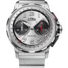The Chronodate Titanium Magnetic Silver Edition features a monochromatic design, from the titanium case to the “Magnetic Silver” dial. The subtle interplay of deep black accents and a touch of red gives this watch an understated yet undeniably sporty character.