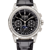 Reference 5270, launched in 2011, is heir to several generations of Patek Philippe perpetual calendar chronographs. The Manufacture reinterprets this timepiece in a model featuring an iconic yet original style. The radiance of platinum — the most precious metal of all yet also the hardest to work with — magnifies the timeless design of the case, with its concave bezel, its elegant two-tier lugs and its correction push-pieces that are satin-brushed on the flanks and polished on top.
