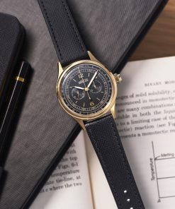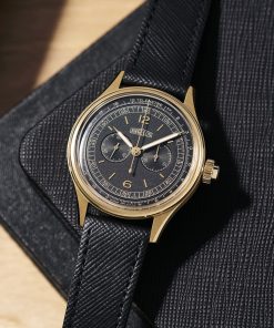 Delivered on a black Saffiano leather strap with a yellow gold pin buckle, the Chronographe Télémètre feels effortlessly balanced, both in size and spirit. Every detail speaks to restraint and purpose rather than excess, the sort of design that rewards time spent up close. It is a chronograph made for those who appreciate the quiet thrill of a hand-wound movement, the gleam of polished gold, and the satisfaction of a single, precise click.