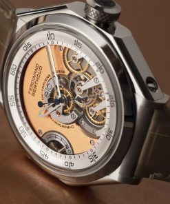 The Chronomètre FB RES Jubilee Edition has been released to celebrate the 70th anniversary of Sincere Haute Horlogerie, a long-time partner of Chronométrie Ferdinand Berthoud. This exclusive series is limited to just three pieces, featuring a platinum octagonal case and a satin-brushed salmon dial.