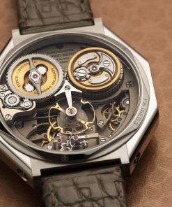 Designed in collaboration with Sincere, each watch is engraved with Sincere’s logo at nine o’clock, symbolizing infinity. The timepiece includes an advanced movement system with a fusee-and-chain mechanism for constant force and a one-second remontoir d’égalité for precise timekeeping, delivering a deadbeat seconds display. The skeletonized dial and hand-polished angles showcase the artistry and craftsmanship, requiring over 250 hours to complete.