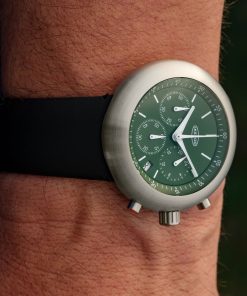 The lineup includes striking new iterations: White Horses, an elegant reinterpretation; Gold Dots, the bestseller reborn; Bottle Green, quietly timeless; and a debut Panda Version. For collectors, the Limited Pistachio Edition offers just 50 numbered pieces. Inside, the Seiko VK63 chronograph movement powers the 44mm stainless steel case, topped with sapphire crystal and paired with a silicone strap. The Chronopod 2025 is an update and also Ikepod’s statement for the future of watchmaking.
