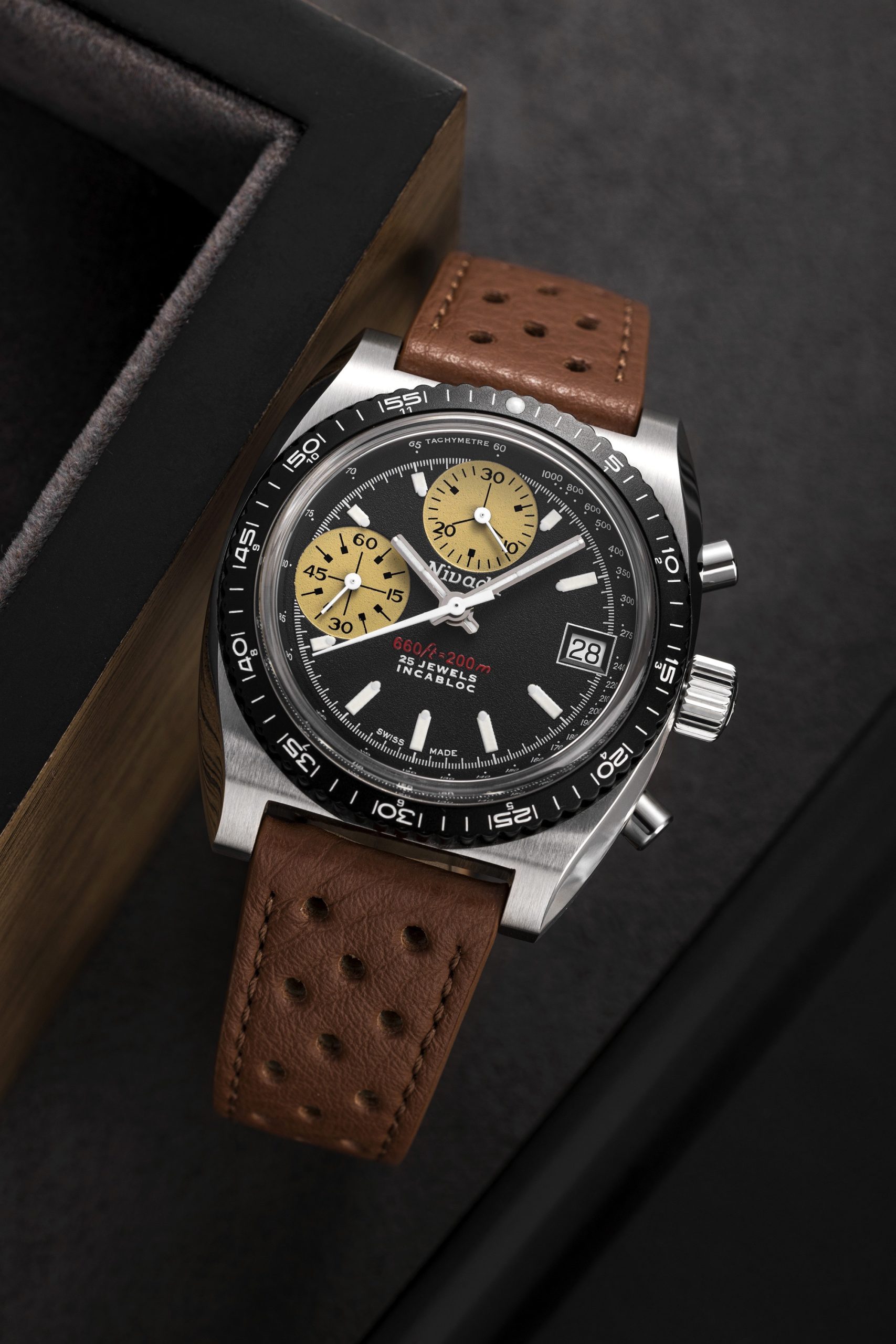 Since 1926, Nivada Grenchen has been synonymous with quality. In 2018, Guillaume Laidet aimed to revive the brand’s iconic models for a broader audience. The discovery of the Chronosport prototype, with only about 20 ever made and never commercialized, sparked huge demand on social media for a reissue.