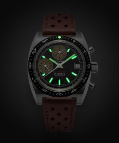 The Chronosport is powered by the automatic Valjoux-7750-ETA movement, with a 42-hour power reserve and multiple functions. Its 38mm stainless steel case, domed sapphire crystal, and a water resistance up to 200 meters. Additionally, it features a fluted unidirectional rotating aluminum bezel and offers 10 strap options for customization.