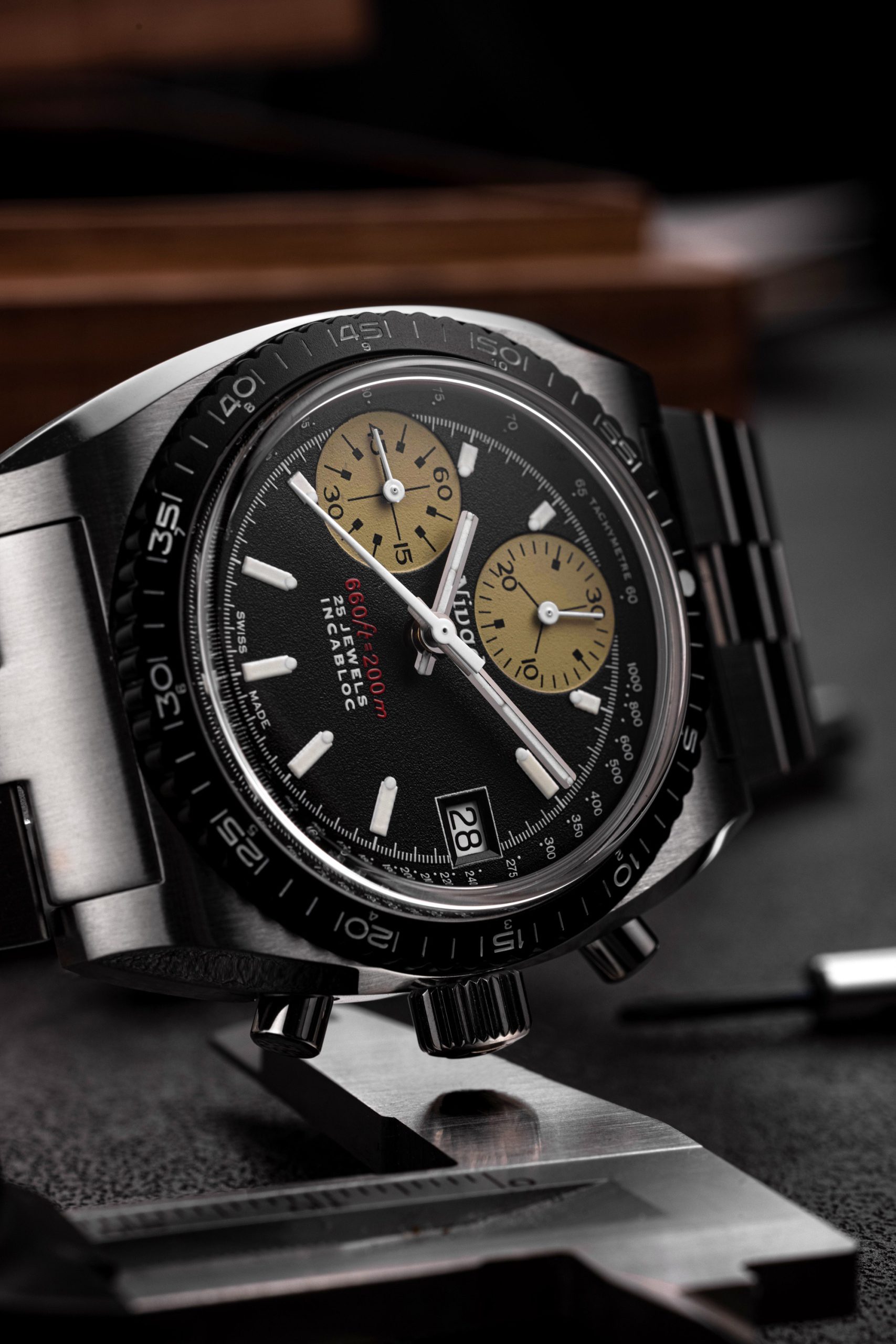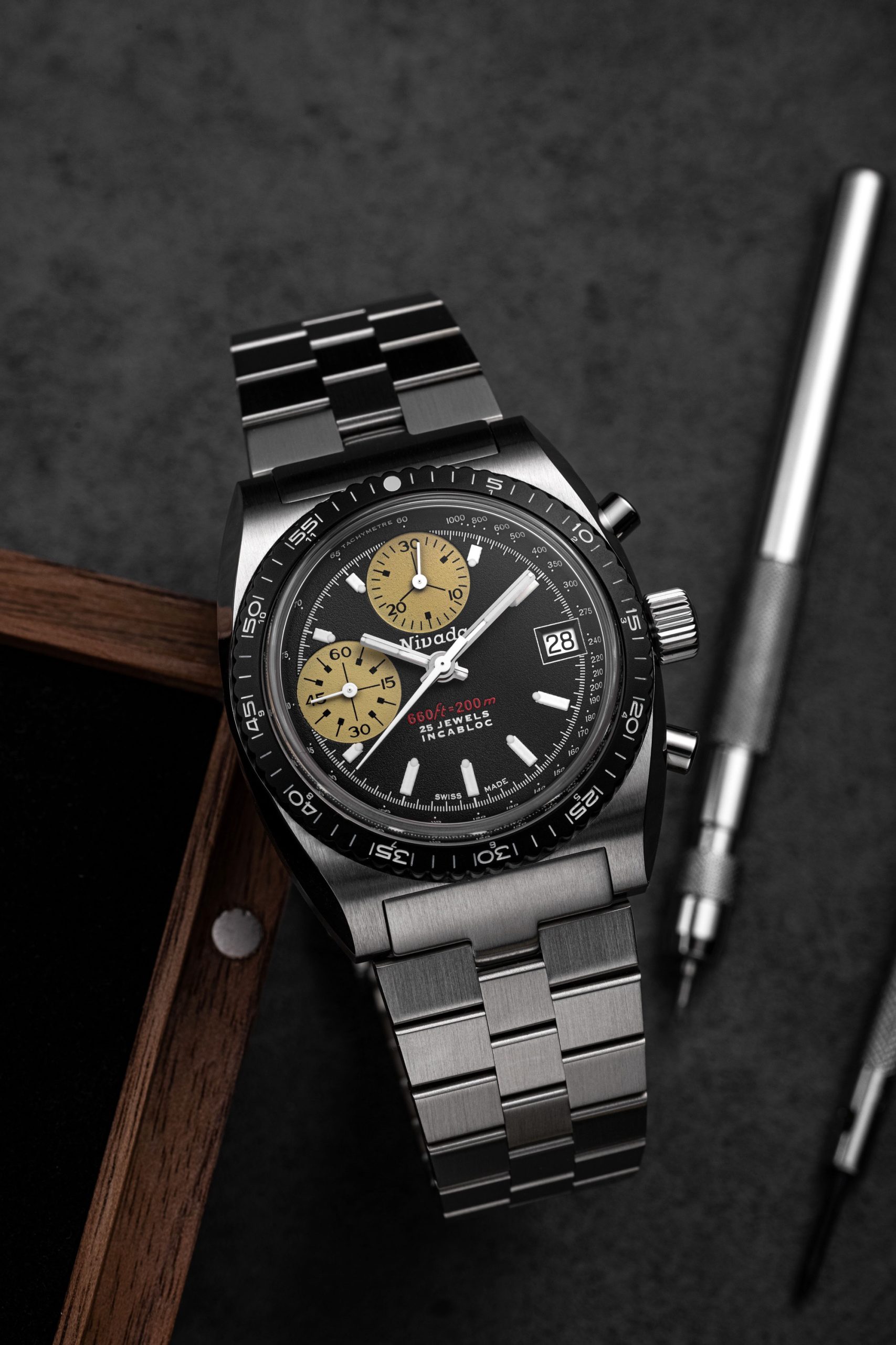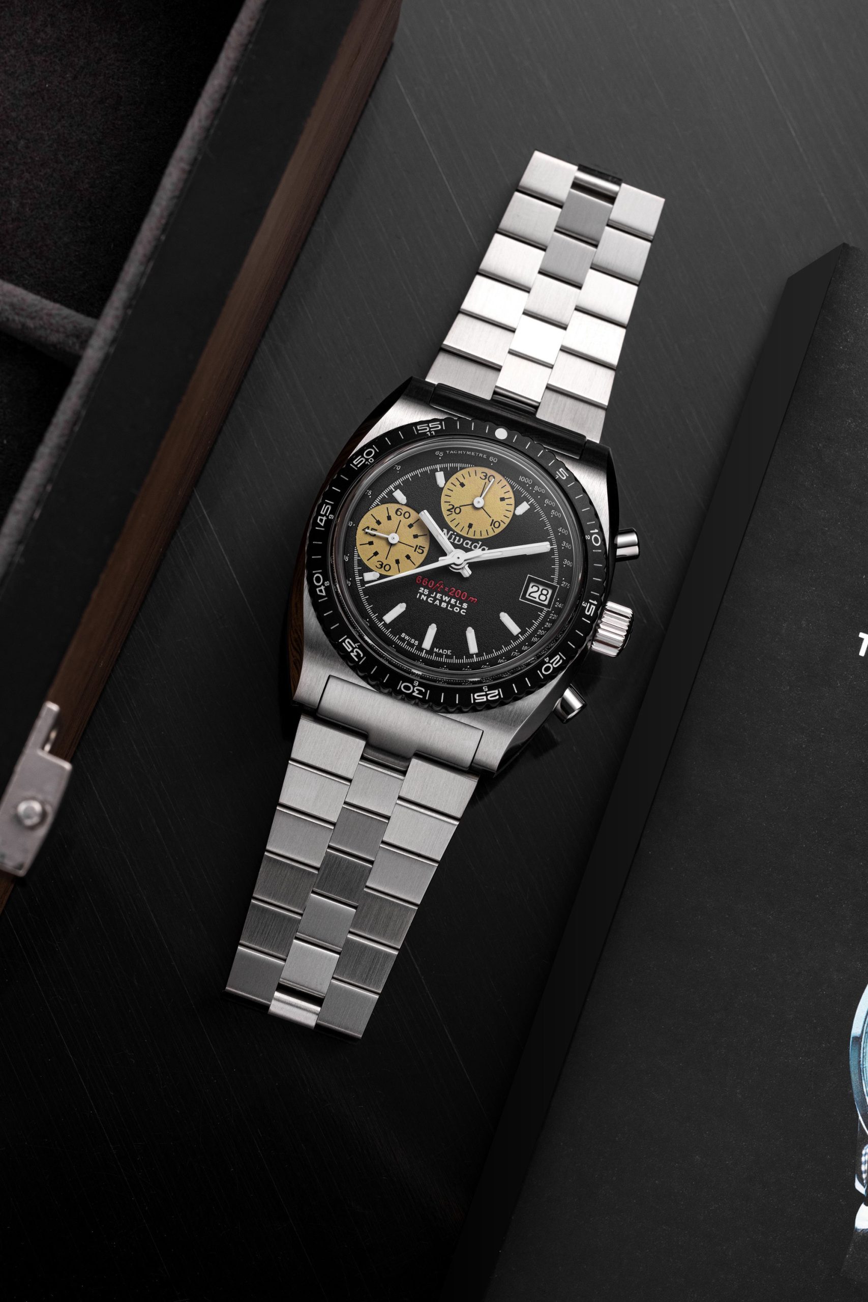 Since 1926, Nivada Grenchen has been synonymous with quality. In 2018, Guillaume Laidet aimed to revive the brand’s iconic models for a broader audience. The discovery of the Chronosport prototype, with only about 20 ever made and never commercialized, sparked huge demand on social media for a reissue.