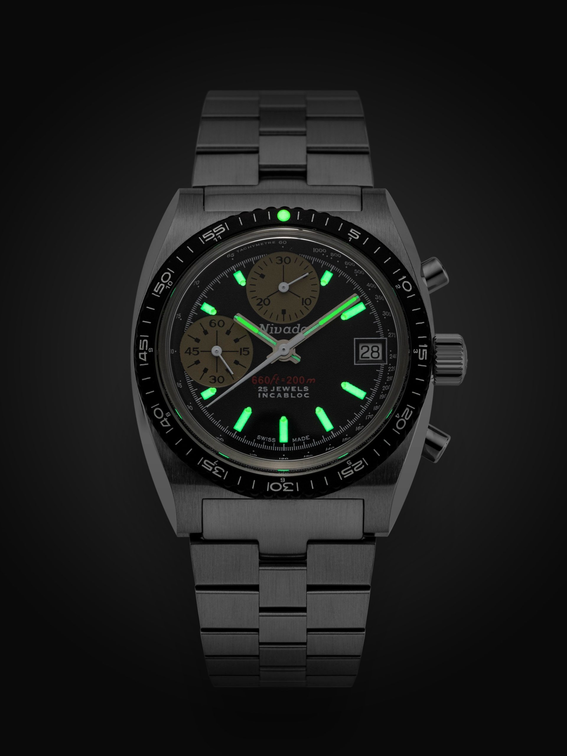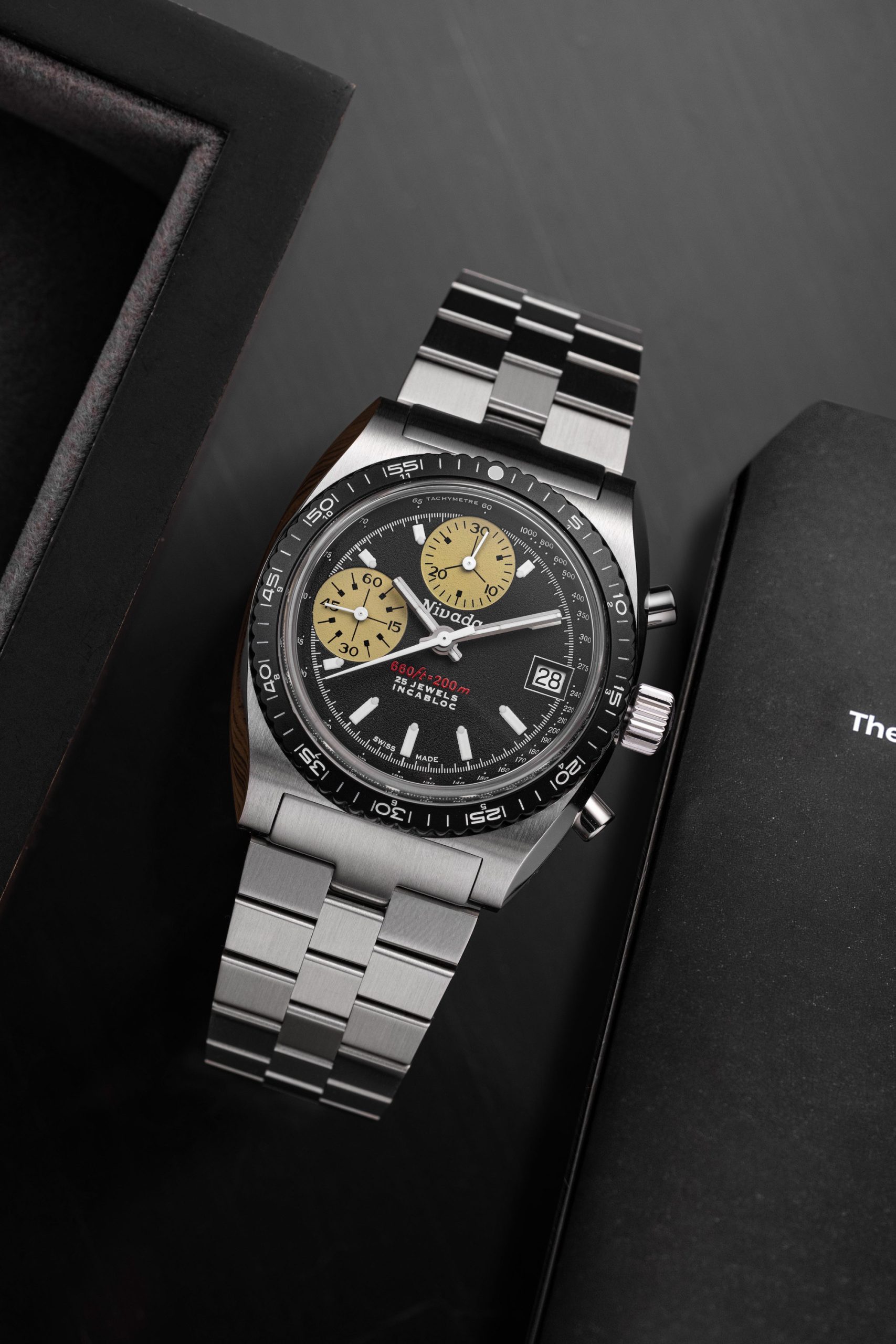 Nivada Grenchen’s Chronosport 38mm makes a sensational debut, drawing inspiration from a previously unreleased vintage chronograph prototype from the 1970s. This classic timepiece has been refreshed for the modern man, combining the excellence of Swiss watchmaking with a sleek and sophisticated design.