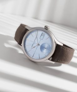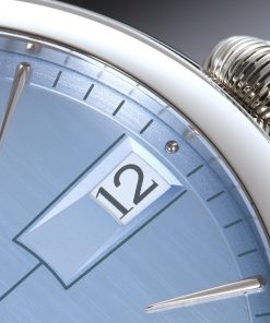 The translucent blue lacquer dial features a vertically brushed center and a snailed small seconds subdial at 6 o’clock, evoking a sense of calm precision. White gold Assegai hands and drop indices root the design in tradition, while the bold date aperture—framed in dark blue—adds a sharp, modern edge. Blending motorsport spirit with classical elegance, the Classic Auto Horizon is a piece that looks ahead without forgetting its past.