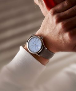 Powered by the LF270.01 calibre, the Classic Auto Horizon features a self-winding movement with a micro-rotor, originally developed for the brand’s sportier models. It combines everyday practicality—a 72-hour power reserve and a date function—with haute horlogerie finishing that reflects Laurent Ferrier’s watchmaking roots. With an oscillating weight in 950 platinum and over 139 manual finishing operations, the movement is as technically impressive as it is visually striking.