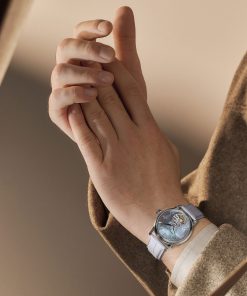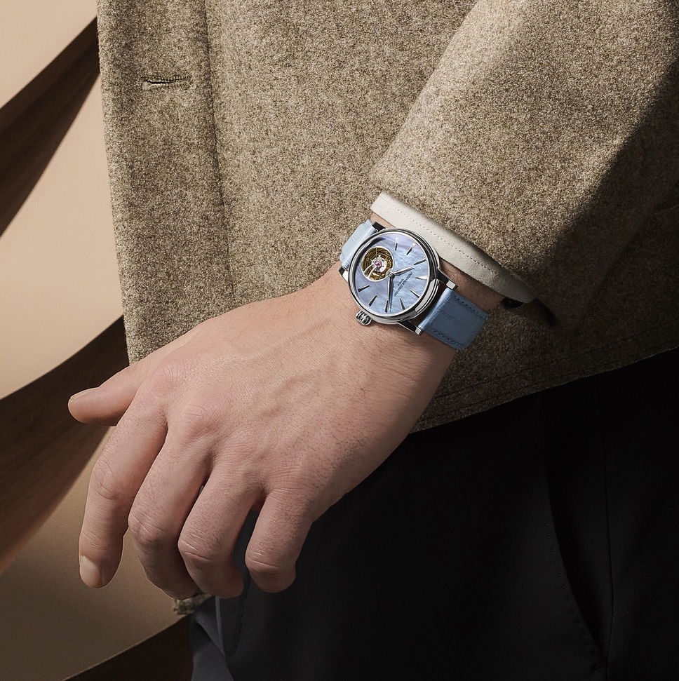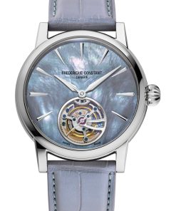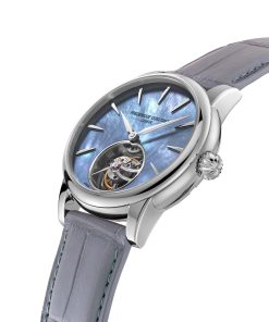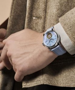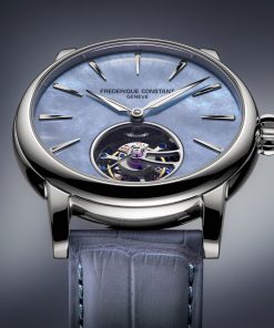 The use of natural mother-of-pearl gives each watch a unique personality, reflecting light in unpredictable ways and adding emotional depth to the dial. Frederique Constant positions this model for watch lovers who appreciate both technical mastery and visual nuance. Each dial is different, owing to the organic texture of the material. These subtle variations, paired with the hand-assembled movement and decoration, ensure no two watches are exactly alike.