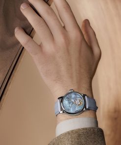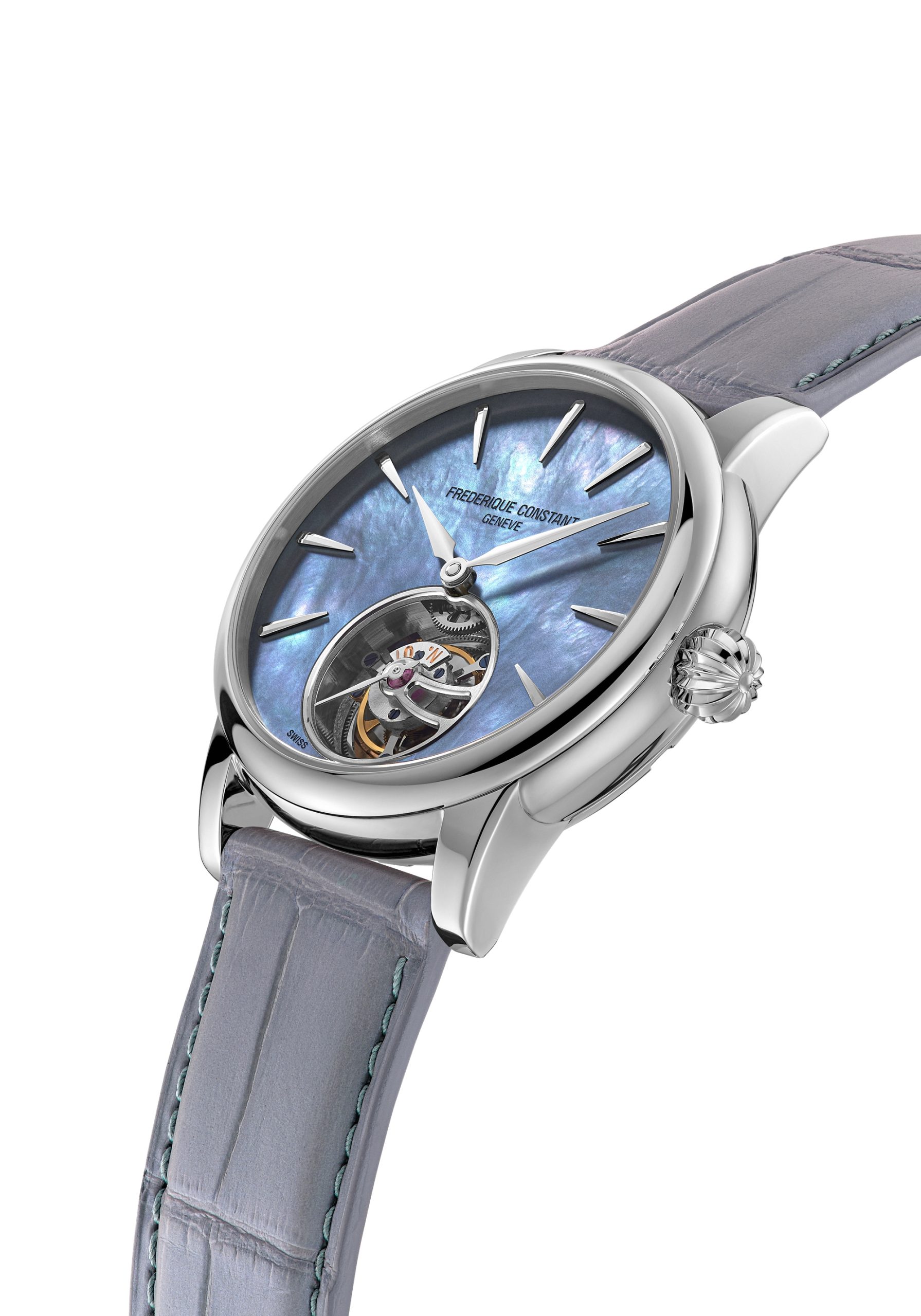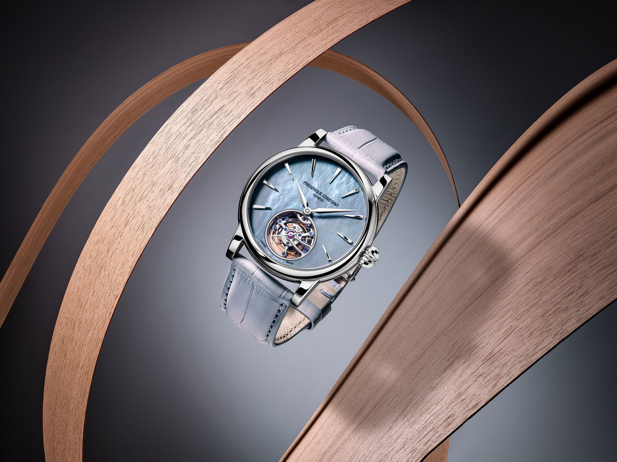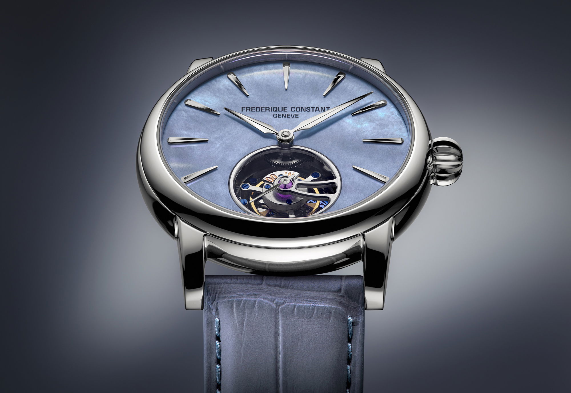 Frederique Constant has introduced a new version of its Manufacture Tourbillon, now featuring a mother-of-pearl dial for the first time. Set in a 39mm 18-carat white gold case, the dial brings a soft interplay of grey and blue tones that complement the polished indexes, blued screws, and the shimmering finish of the tourbillon. The tourbillon itself, part of the FC-980 calibre introduced in 2008, is visible through both the front and back, and performs one full rotation every 60 seconds. Only 36 individually numbered pieces have been made.