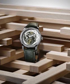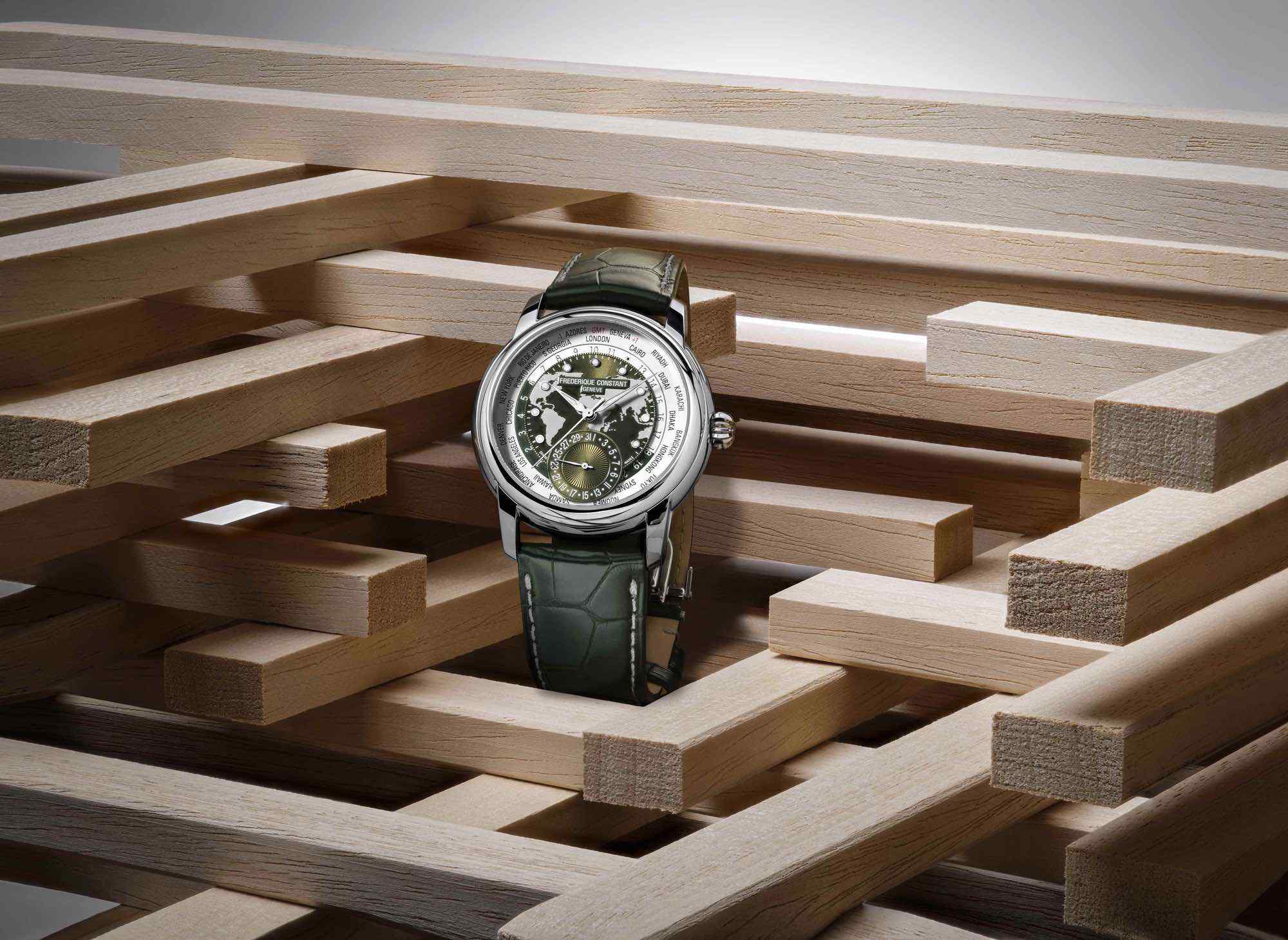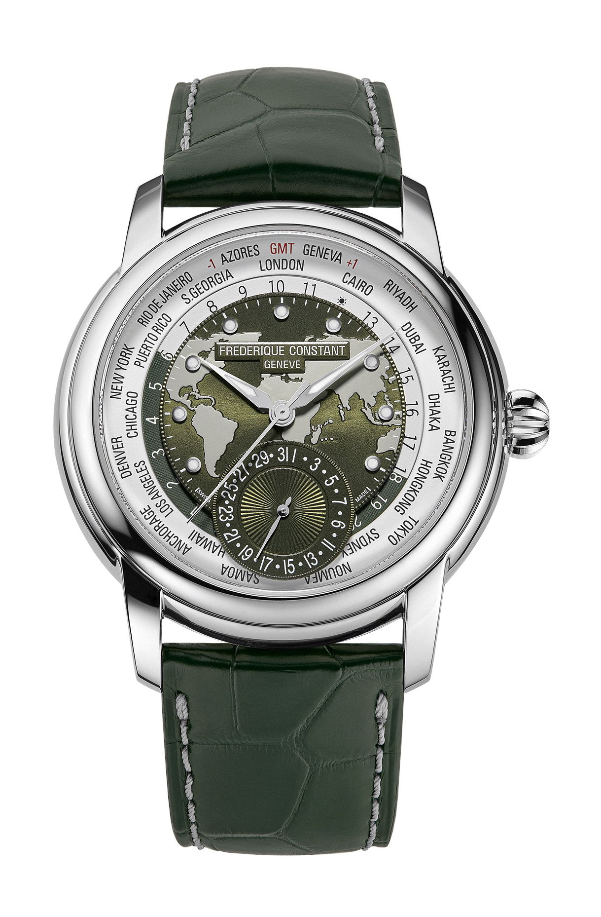 In the latest evolution of the Classic Worldtimer Manufacture, Frederique Constant has added a striking new forest green variant to its lineup, complementing the previously established trio of daytime white, nighttime black, and ocean blue. The new limited editions, available in either a 42mm steel case (718 pieces) or an 18-carat rose gold case (36 pieces), elevate the iconic worldtimer with a dial that pays homage to Earth’s landscapes, with a finely detailed world map, date window, and a dark green leather strap.