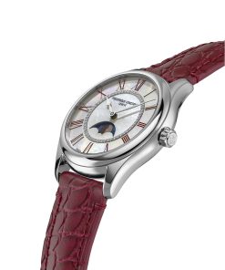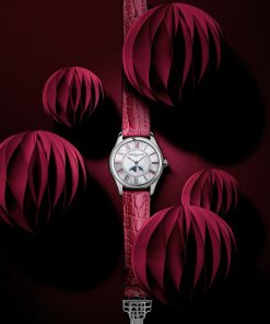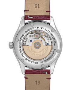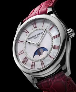 This lunar display, situated at 6 o’clock, features a unique lunar disc in shades of gray exclusively made for Frederique Constant. The steel case, highlighted with silver accents, matches the mother-of-pearl dial, reflecting pink, light green, blue, or grey hues, casting a mesmerizing play of light. The Classics Elegance Luna features a novel hour ring, replacing traditional Arabic numerals with slender Roman counterparts, matching the color of the leather strap. The watches in this collection are 36 millimeters in diameter and self-winding. They are powered by the FC-331 caliber and have a 38-hour power reserve.