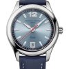 The strap is navy blue calfskin with contrast stitching, tying in nicely with the dial details. It’s a comfortable fit and keeps the look anchored in vintage racing culture. This model leans a little more into performance but stays wearable. It’s for someone who wants a watch with a little more edge, without stepping away from the classic Healey design language.