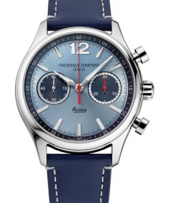 The chronograph model in this year’s Healey lineup brings more presence and function to the table. At 42 mm, it’s the largest of the three and the most openly sporty. The Healey blue dial is paired with a navy flange, giving the watch depth without overloading it. The chronograph layout features two subdials: a 30-minute counter and a running seconds. Each is easy to read, well-positioned, and fits the clean symmetry of the watch.