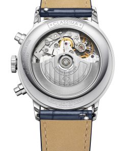 Encased in a 42mm polished stainless steel case with scratch-resistant sapphire crystals, the watch ensures durability. Its self-winding movement operates at 4 Hz with a 48-hour power reserve, ensuring reliable performance. With water resistance up to 5 ATM, it’s suitable for daily wear. Paired with a blue alligator leather strap featuring an interchangeable stainless steel clasp, it offers both comfort and security.