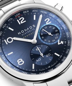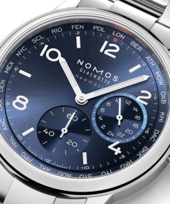 At the heart of the Club Sport neomatik Worldtimer is the new DUW 3202 caliber, an ultra-thin automatic movement measuring just 4.8 millimeters tall—slimmer than a passport—yet offering a 42-hour power reserve and incorporating the NOMOS swing system for impeccable precision. The stainless steel case stands only 9.9 millimeters in height, making it one of the thinnest worldtime watches ever produced, while its 10 atm water resistance, screw-down crown, and luminous details ensure it’s ready for any journey, from boardroom to beach.