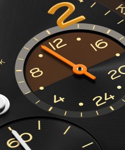 The dials are where the magic happens. Black galvanized with a sunburst finish, they shimmer beneath blue anti-reflective sapphire, accented by luminous flashes of turquoise, orange, or green. Each colorway channels the sensation of navigating cities from above at night or reading cockpit instruments mid-flight. Whether it’s the turquoise “Trace,” the amber-orange “Grid” echoing the glow of urban streetlights, or the olive-and-ecru “Vector,” every variant captures a distinct facet of nocturnal travel.