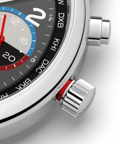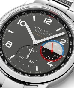 At the heart of the Club Sport neomatik Worldtimer is the new DUW 3202 caliber, an ultra-thin automatic movement measuring just 4.8 millimeters tall—slimmer than a passport—yet offering a 42-hour power reserve and incorporating the NOMOS swing system for impeccable precision. The stainless steel case stands only 9.9 millimeters in height, making it one of the thinnest worldtime watches ever produced, while its 10 atm water resistance, screw-down crown, and luminous details ensure it’s ready for any journey, from boardroom to beach.
