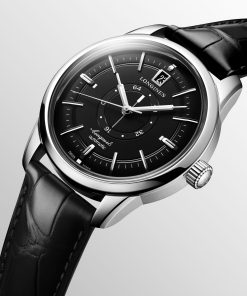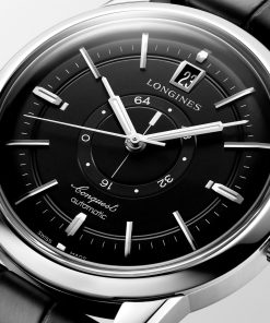 Celebrating the 70th anniversary of its Conquest collection (from 1954 to 2024), Longines introduces a new version of a classic timepiece: the Conquest Heritage Central Power Reserve. This model pays homage to the original design with a novel power reserve indicator displayed through two rotating discs at the center of its dial. It features a three-section black dial, bordered by twelve yellow gold-colored hour markers. The dial also includes a delicate circular thread that delineates the minute track. The hour and minute hands, designed in a skyscraper style and echoing the color of the hour markers, are treated with Super-LumiNova® for visibility. This 38mm watch runs on the Longines L896.5 calibre, a specially designed movement resistant to magnetism.