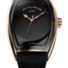 One of the standout features of the Curvex CX Piano is its pear-shaped hands, which gracefully adorn the black laqué piano dial. This design choice not only adds to the watch’s aesthetic appeal but also ensures clear visibility of the time.