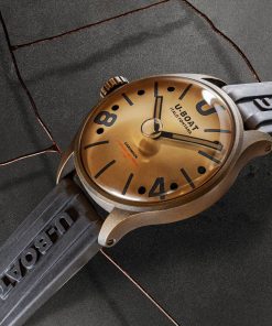 Each watch features a stainless steel case with a bronze PVD finish, artfully aged with special paints, and comes with two dial options: one featuring a bronze-colored superluminova against black and another with a sunburst bronze finish highlighted by black indices. Both designs feature the U-BOAT signature dome dial and are fitted with a black vulcanized rubber strap.