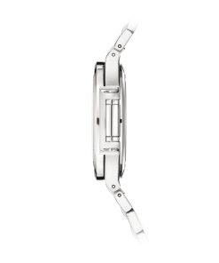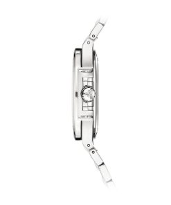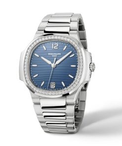 An unprecedented blend of class and casual elegance, this steel Ladies’ Automatic Nautilus combines a blue opaline dial featuring a dainty embossed wave pattern with a diamond-set bezel. Beating beneath it is a self-winding movement adorned with refined finishing visible through a transparent sapphire crystal case-back.