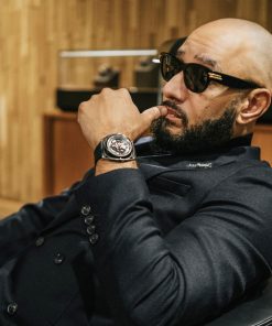 The case is in Grade 5 titanium with a matte black zirconium coating. Floating lugs ensure comfort, while the ingenious 42-component case system makes the dual display not just possible, but practical. As with Swizz Beatz’s genre-defying artistry, this timepiece balances contrasting identities—technical and emotional, classic and modern—into a unified, wearable expression of creativity.