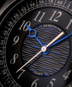Flip the case, and the tone shifts. The classic GMT display offers a nostalgic nod to the Maison’s past with cues from the DB8 and DB10, but it’s far from retro. A hand-guilloché central motif subtly shimmers with blue reflections, creating an almost lyrical display that captures the poetic spirit of the brand. The mirror-polished steel seconds hand glides across the dial like a quiet signature, a refined counterpoint to the boldness of the contemporary face.