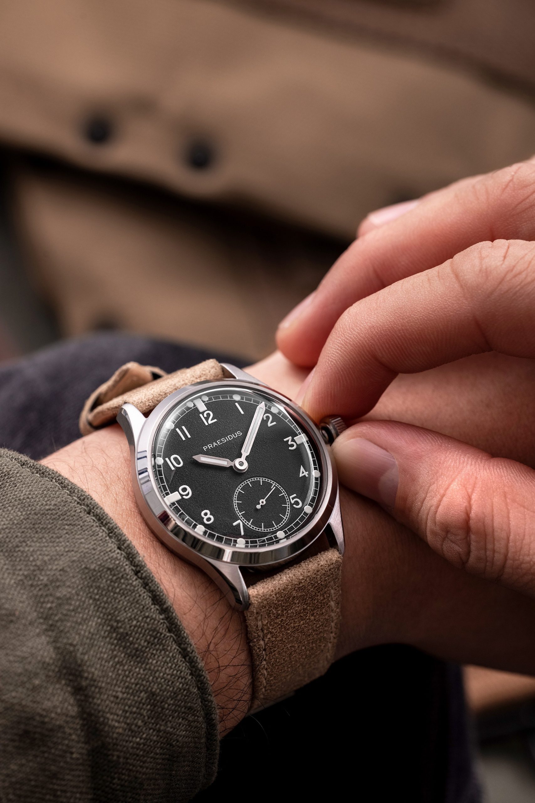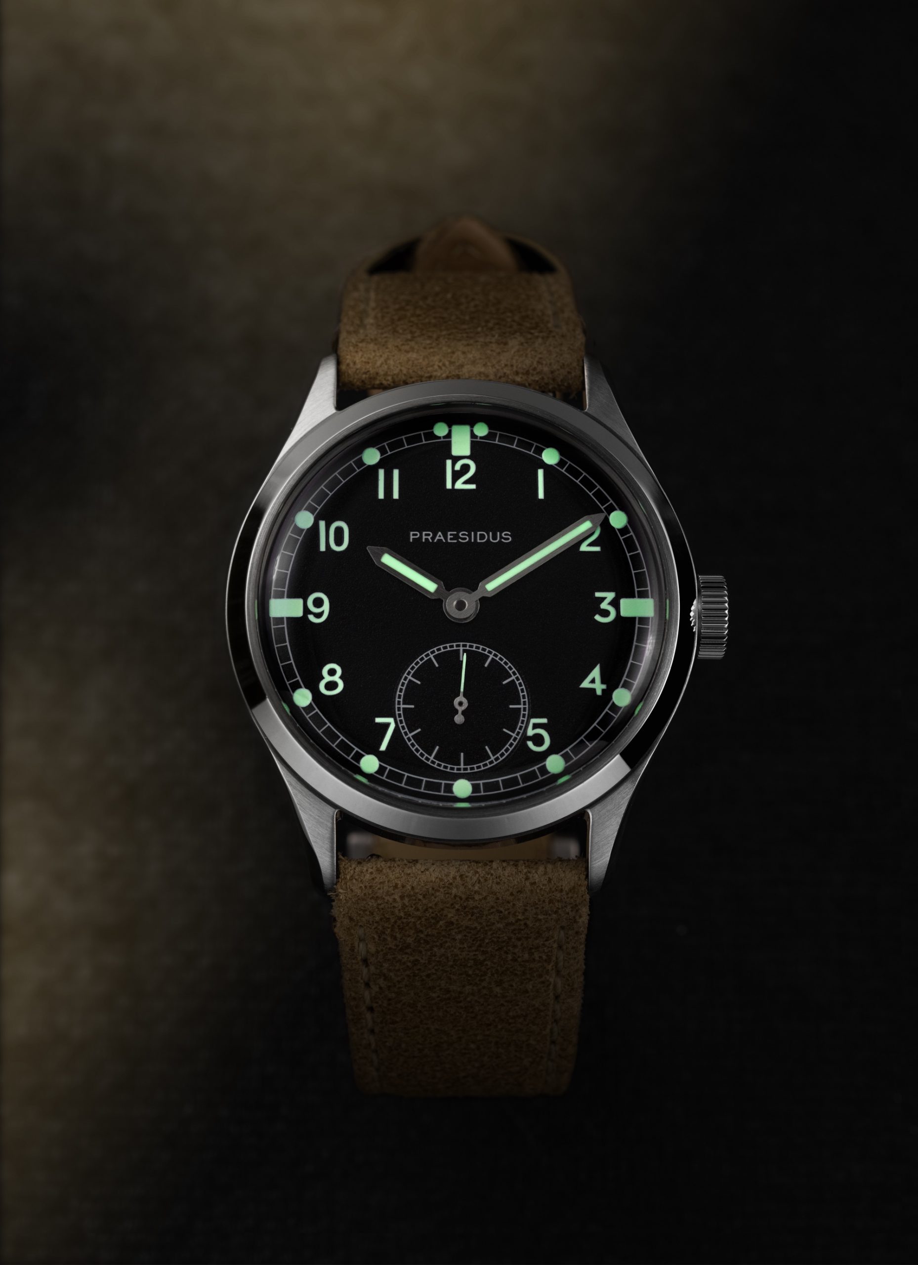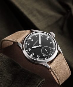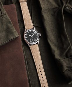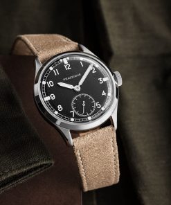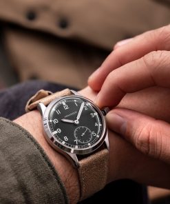 Designed as a tribute to the original Dirty Dozen watches commissioned by the British War Office to standardize high-performance field watches for the British Army, the DD-45 surpasses the original specifications, bringing it into the 21st century. Originally designed to be “waterproof,” the DD-45 modernizes these requirements with a 10ATM water resistance rating and a screw-down crown, ensuring it remains secure in wet conditions. The double-domed sapphire crystal offers best-in-class scratch resistance.