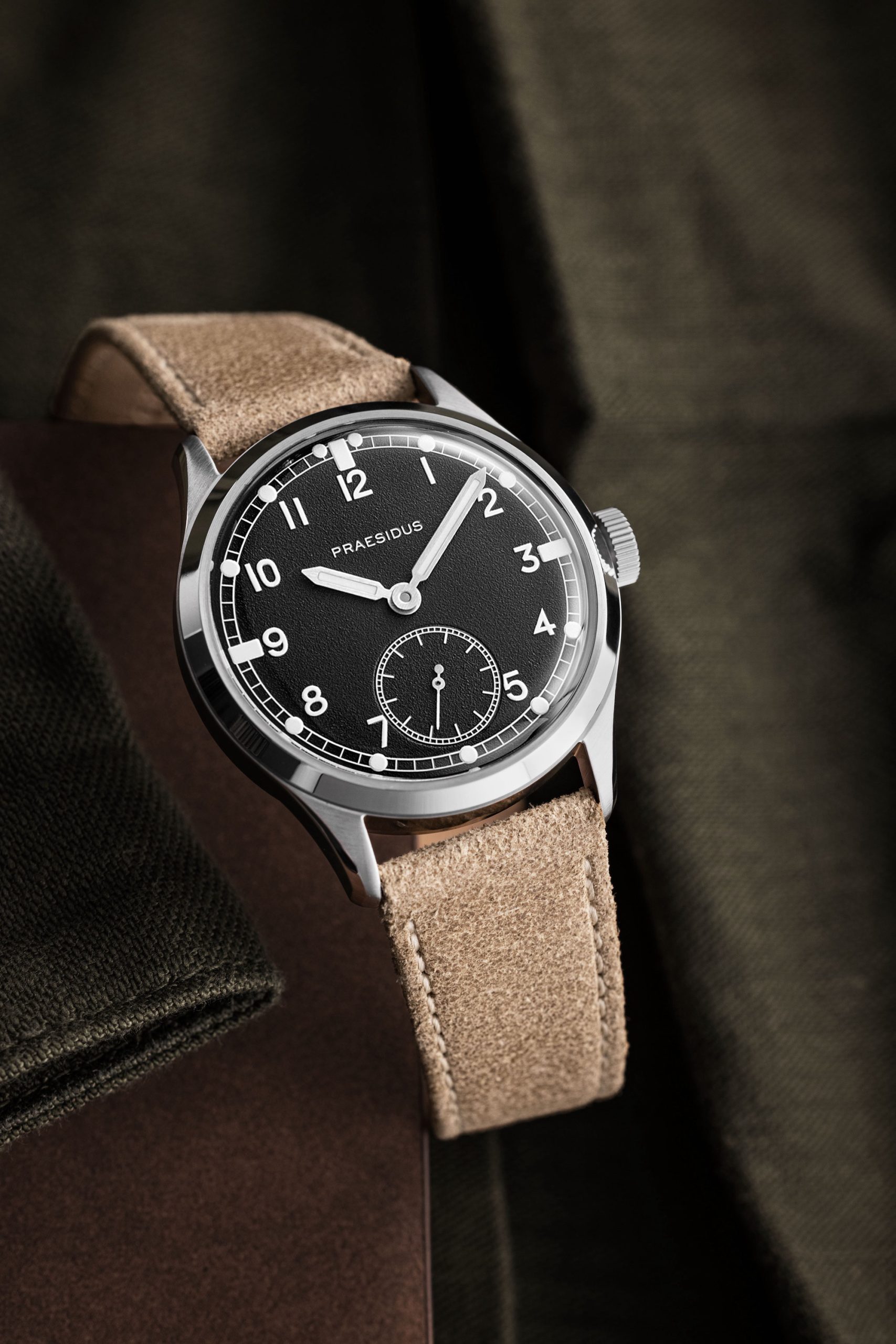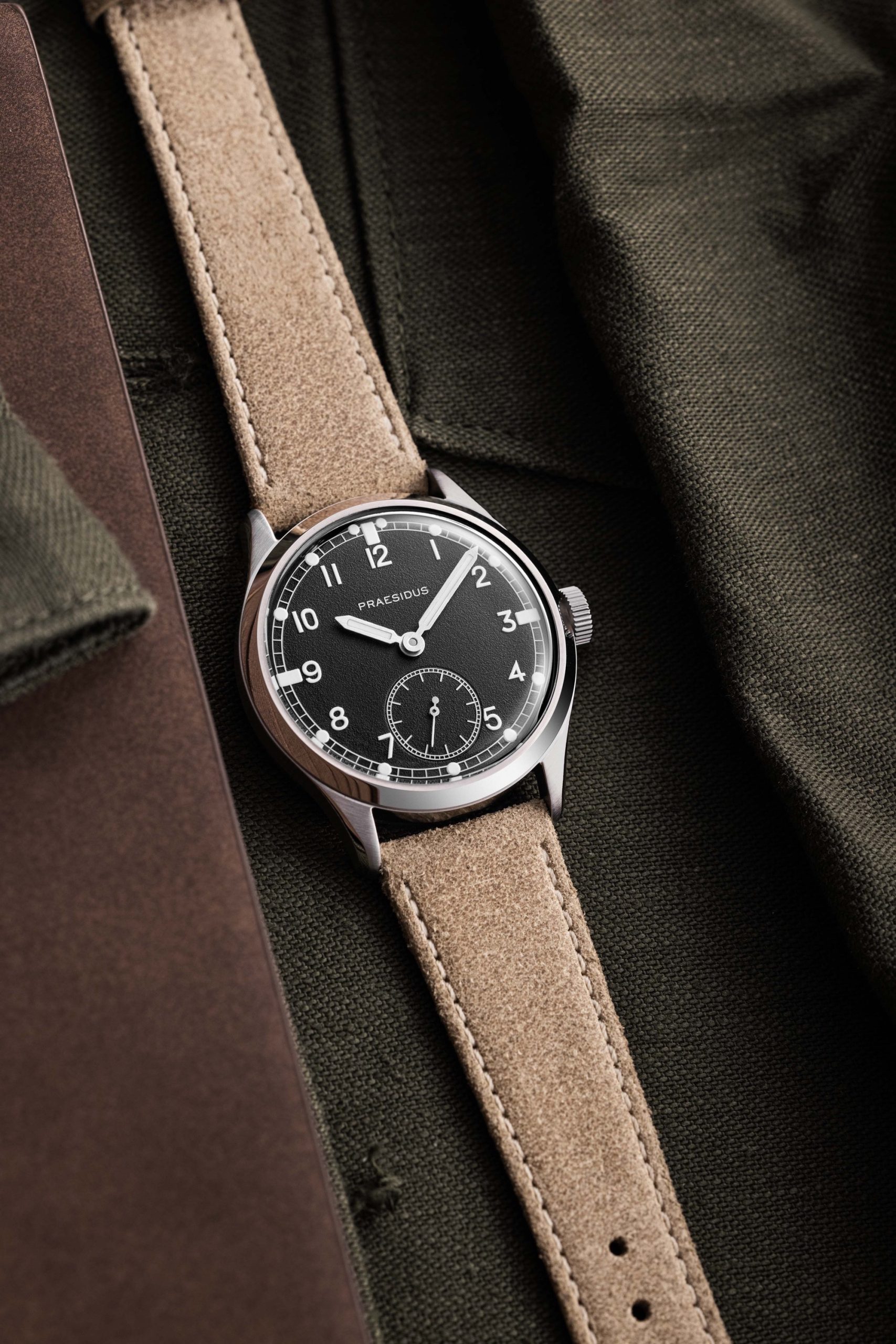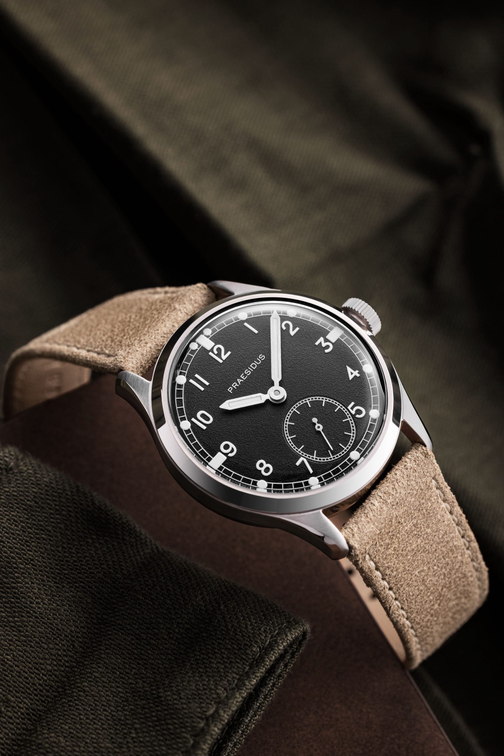 Designed as a tribute to the original Dirty Dozen watches commissioned by the British War Office to standardize high-performance field watches for the British Army, the DD-45 surpasses the original specifications, bringing it into the 21st century. Originally designed to be “waterproof,” the DD-45 modernizes these requirements with a 10ATM water resistance rating and a screw-down crown, ensuring it remains secure in wet conditions. The double-domed sapphire crystal offers best-in-class scratch resistance.