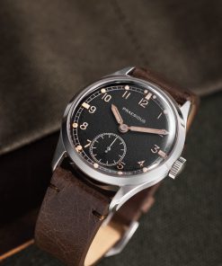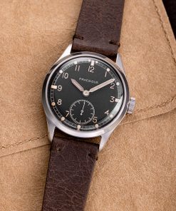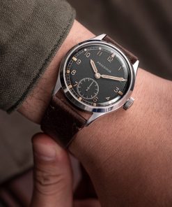 The DD-45 is not just a visual tribute but also a modern one to the original Dirty Dozen watches, which were designed for the British War Office to standardize high-performance field watches for the British Army. The DD-45 surpasses the original specifications, bringing the design into the 21st century. Originally intended to be “Waterproof,” the DD-45 now has 10ATM water resistance and a screw-down crown, ensuring durability and safety in wet conditions. Additionally, the double-domed sapphire crystal provides best-in-class scratch resistance.
