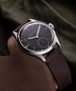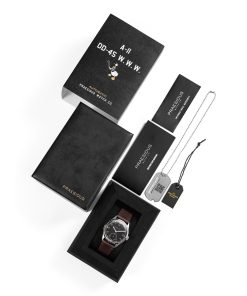 The DD-45 “Patina” represents the culmination of a two-year collaboration with a dial supplier. This dial showcases authentic patina indexes and hands, achieved through a process combining chemical aging and extensive UV light exposure. The outcome is a distinctively unique dial that resembles an original Dirty Dozen watch, as if it has aged naturally over 80 years. It emphasizes the genuine age and wear of the originals, reflecting the rugged use they endured in the hands of military personnel.