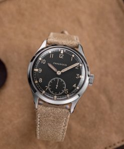 The DD-45 is not just a visual tribute but also a modern one to the original Dirty Dozen watches, which were designed for the British War Office to standardize high-performance field watches for the British Army. The DD-45 surpasses the original specifications, bringing the design into the 21st century. Originally intended to be “Waterproof,” the DD-45 now has 10ATM water resistance and a screw-down crown, ensuring durability and safety in wet conditions. Additionally, the double-domed sapphire crystal provides best-in-class scratch resistance.