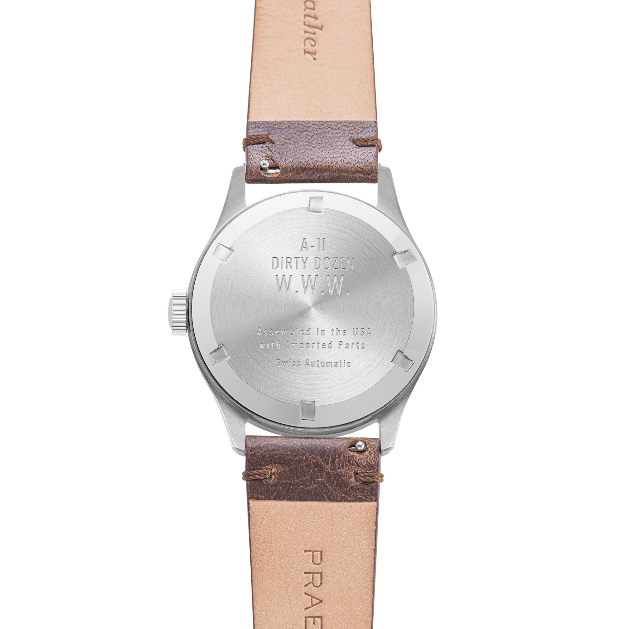 Respecting the historical origins of the original Dirty Dozen watches, all twelve of which were produced in Switzerland, the DD-45 is powered by the Swiss-made Landeron L24 movement. This movement features 28,800 beats per hour (BPH) and 25 jewels, ensuring a smooth second-hand movement and high precision, ready for use in any condition.