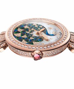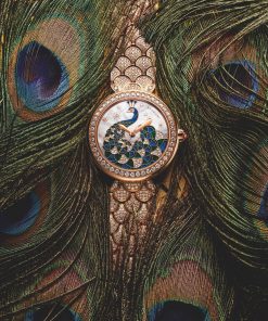 Bulgari’s Divas’ Dream Peacock collection, launched in 2017, continues to evolve with new interpretations that showcase the brand’s proficiency in jewelry, artisanal crafts, and horological complications. This collection highlights the peacock, a symbol of beauty and confidence, which is a key element in Bulgari’s bestiary. The intricate designs of the collection draw inspiration from the peacock’s feathers, featuring arabesques and curves that echo the mosaic patterns found in the Baths of Caracalla, integral to Bulgari’s design language.