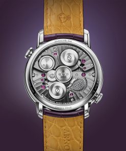 This watch features a dual tourbillon movement powered by the A&S8513 caliber. The two independent time zones, displayed at 12 and 6 o’clock, allow for complete flexibility, even in offset time zones. Each tourbillon is driven by its own barrel and gear train, ensuring precision and adaptability for the wearer.