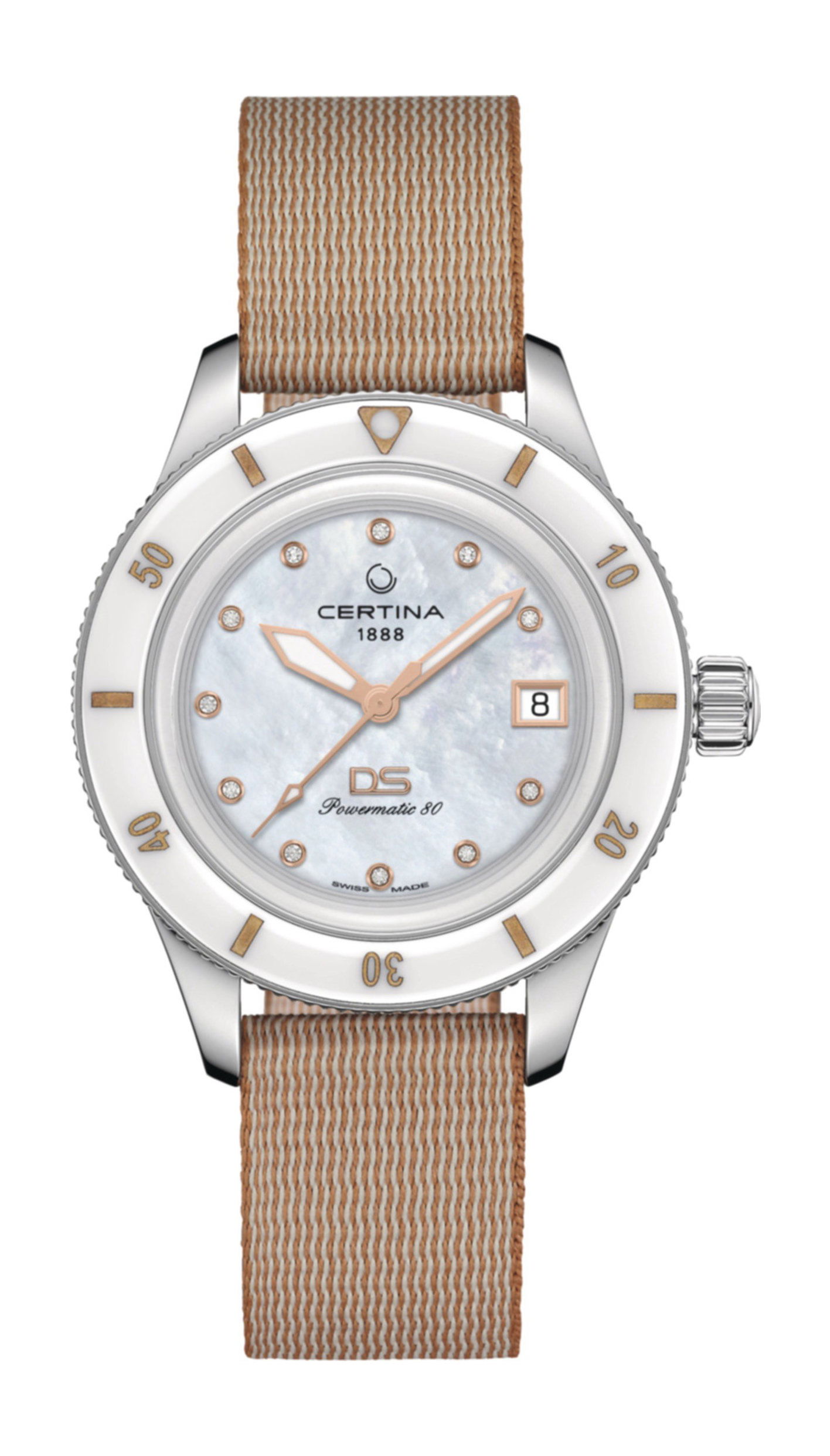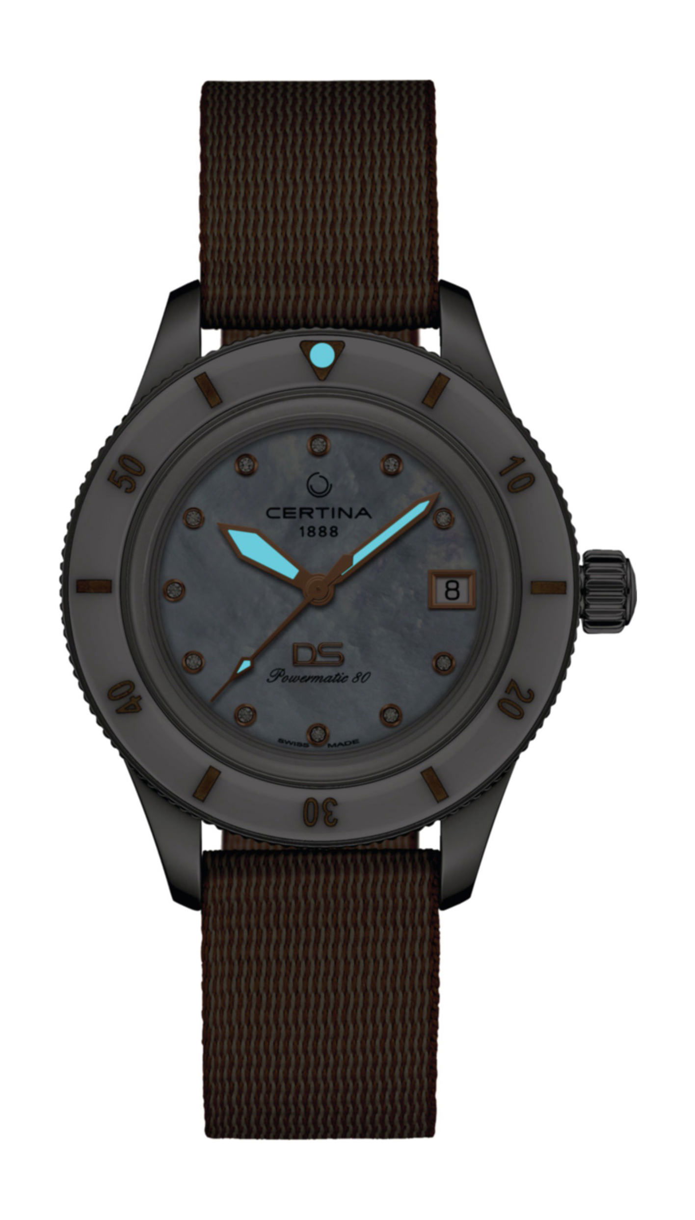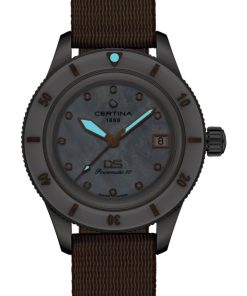 Measuring 39 mm in diameter, the distinguished DS PH200M watch presents a truly refined appearance on any wrist. Its graceful combination of mother of pearl, ceramic, and diamonds harmonizes beautifully with the beloved, yet non-traditional, color favored by fashion enthusiasts worldwide. Additionally, it features a strap crafted from sustainable #tide ocean material®. The watch is equipped with an ultra-modern automatic movement and offers water resistance up to 200 meters, assuring both accuracy and durability in one exquisite timepiece.