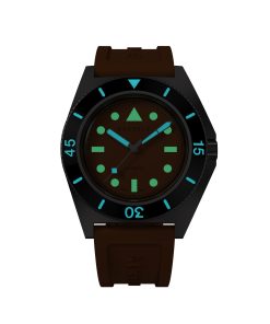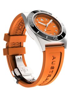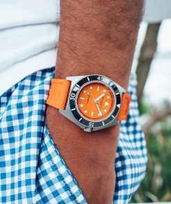 The Endless Summer Tangerine Sun boasts a 39.5mm case size with a lug-to-lug measurement of 47.5mm. Safety and durability aren’t compromised, with a 200m water resistance ensuring its resilience even in aquatic adventures. The double-domed scratch-resistant sapphire crystal is enhanced with five layers of anti-reflective coating, ensuring the dial remains clear and readable, even in challenging lighting conditions. To enhance visibility, the hands and numerals are adorned with the glow in the dark Super Luminova, ensuring time reading is seamless day and night.