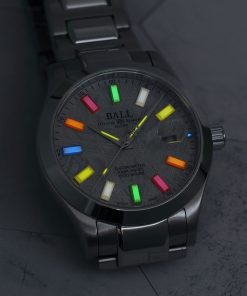 In true BALL fashion, these watches don’t just tell time—they light it up. Leveraging BALL’s proprietary micro gas tube technology, the Marvelight’s hands and indices shine brilliantly through the night without any need for charging. Whether you choose the classic green-and-orange lume or the bold rainbow variant, this timepiece offers a radiant display that’s nearly 100 times brighter than conventional lume. It’s visibility, amplified—no matter how dark the adventure gets.