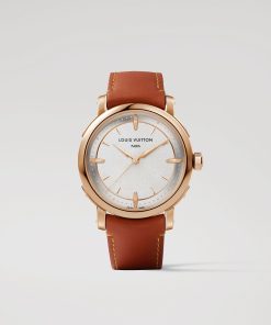 The precision of these watches is ensured by the chronometer-certified cal. LFT023 movement, which features a 50-hour power reserve and energy-efficient titanium seconds hand. The rose-gold models’ dials reference the Monogram canvas texture, while the platinum versions uses rare materials like meteorite and onyx. Each watch includes an engraved serial number, connecting the wearer to Louis Vuitton’s artisanal craftsmanship.