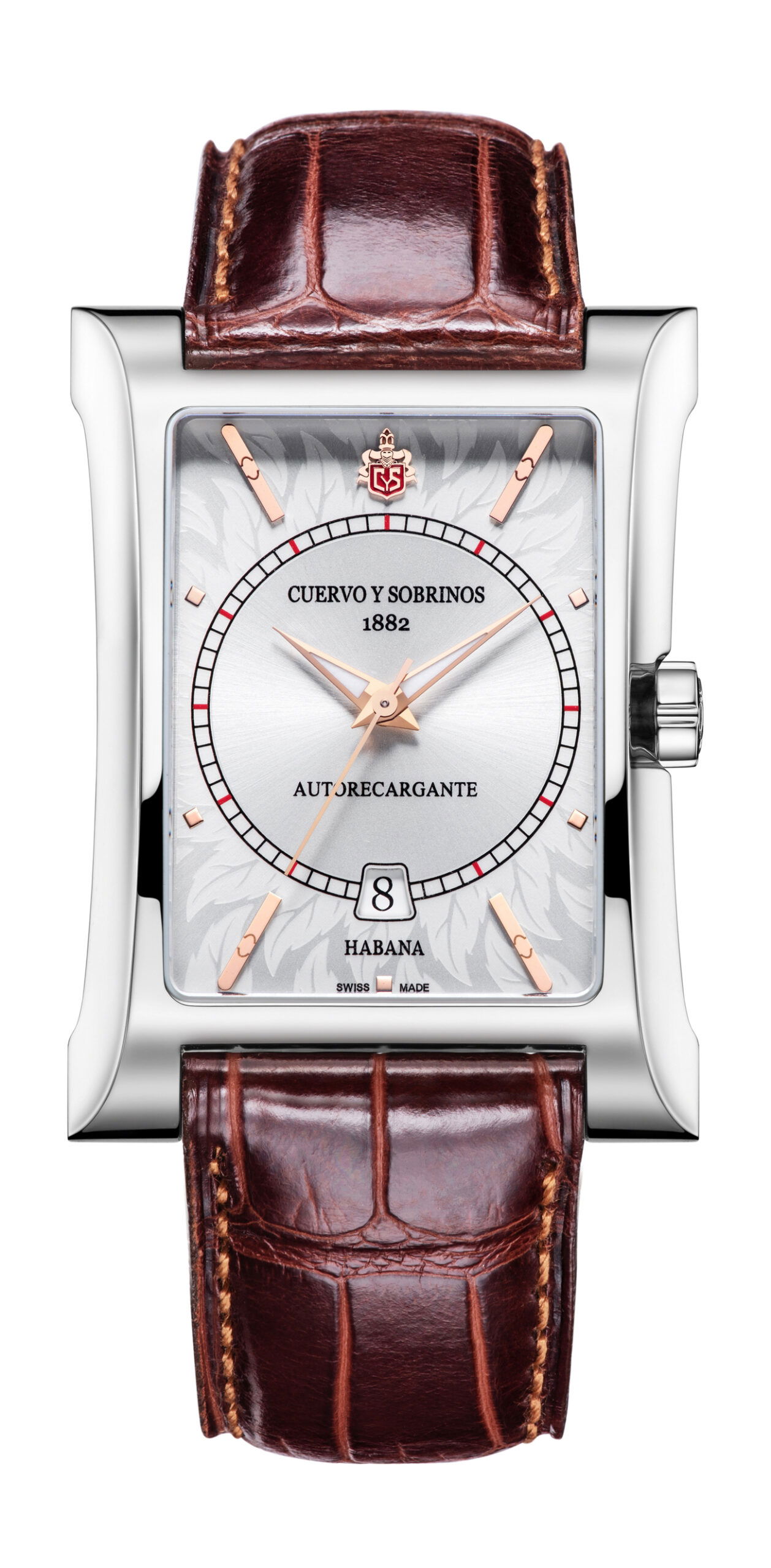 The Espléndidos collection has been at the center of Cuervo y Sobrinos for many years. These watches exemplify the elegance of the Art Deco era, seamlessly blending graceful curves with sharp, clean lines. The dial of the Espléndidos Vitola features a leaf pattern reminiscent of tobacco leaves, paying homage to Cuba’s rich cigar-making heritage. Additionally, the hour markers are meticulously crafted to resemble the iconic shape of Cuban cigars.