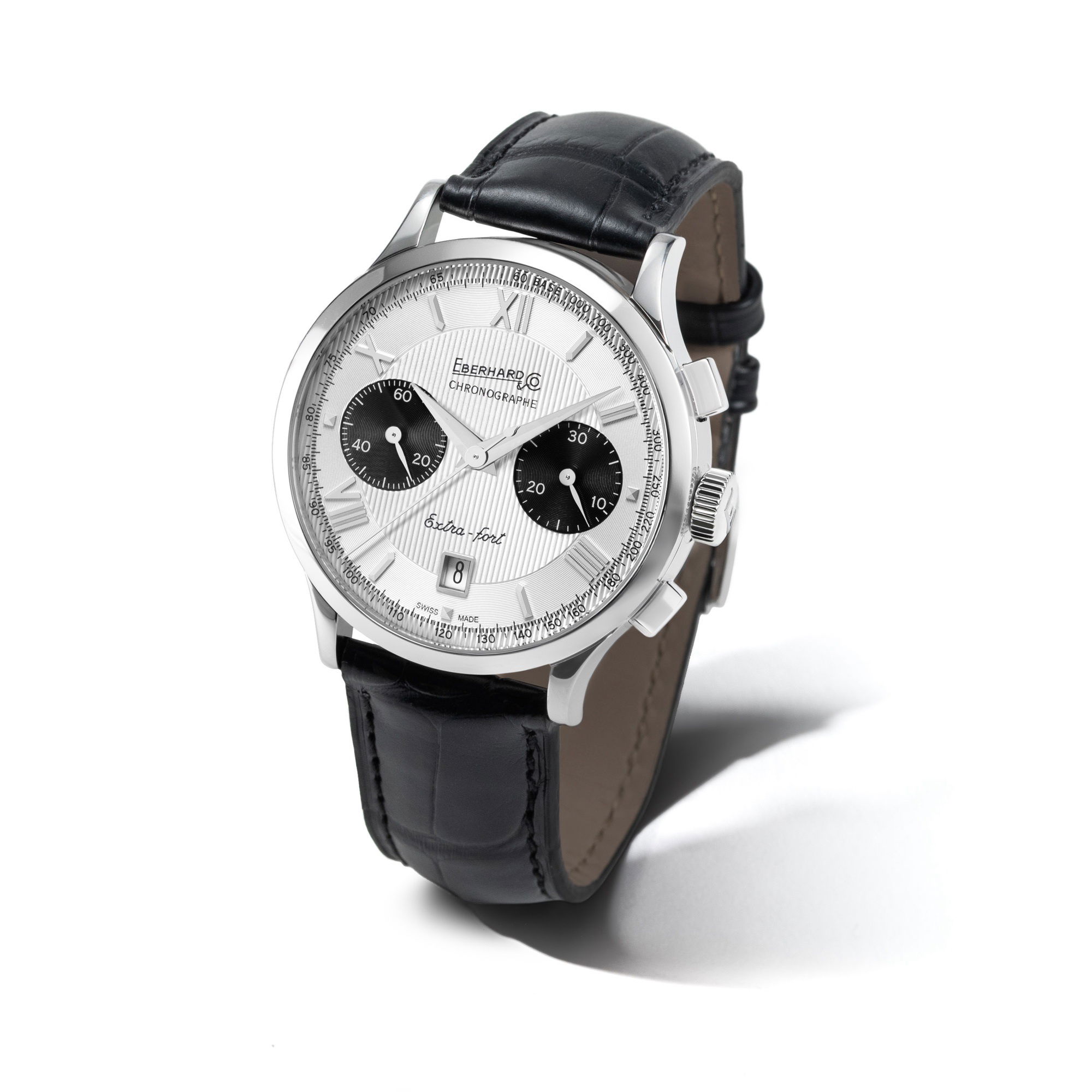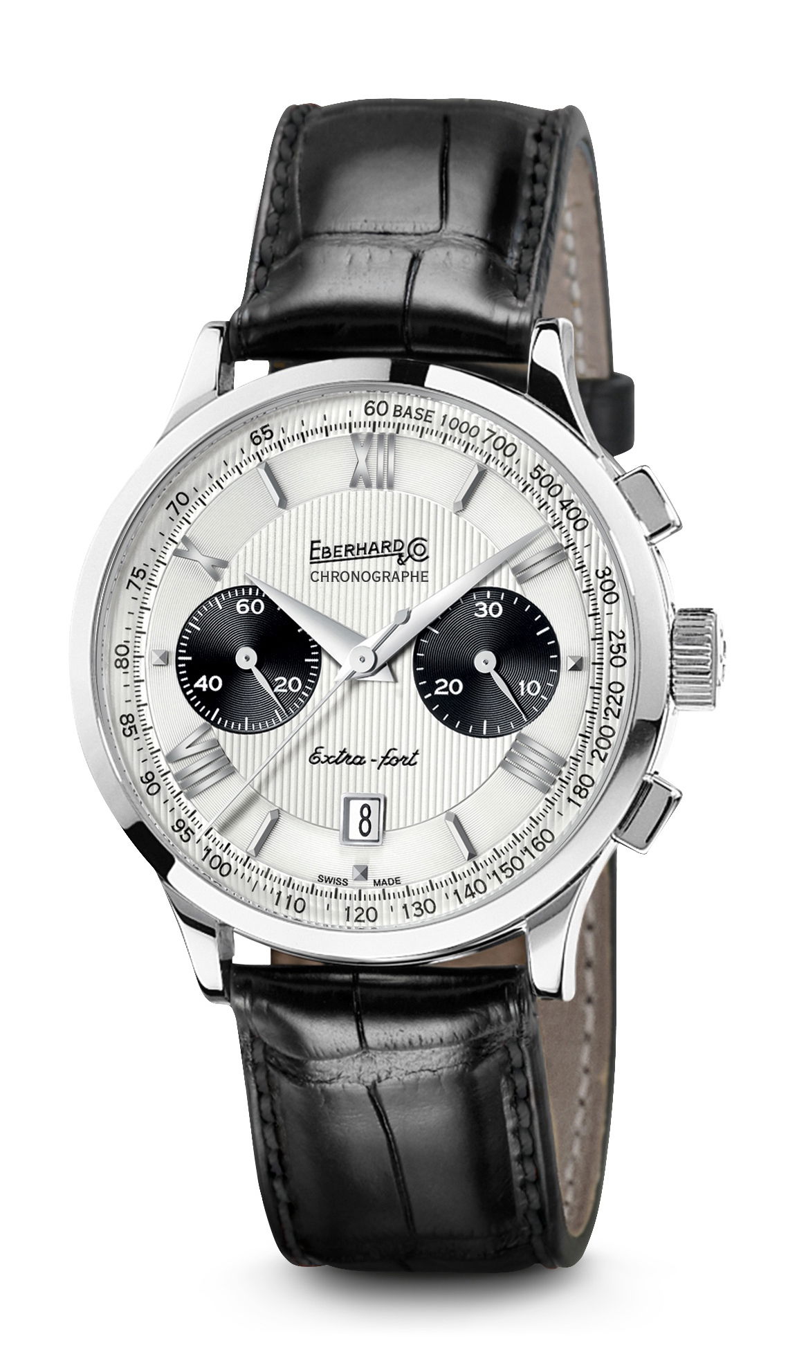 The “Extra-fort Vitré” is a celebrated update in the enduring Extra-fort collection by Eberhard & Co., a series that has enjoyed popularity since its inception in 1940. This latest iteration maintains the iconic allure of the original Extra-fort chronographs, known for their elegant design and Dauphine-type hands, within a 39 mm steel case. The dial showcases a complex arrangement of concentric patterns, combining frappé execution with vertical lines and the azurée finish on the hour band and counters, offering a rich visual experience.
