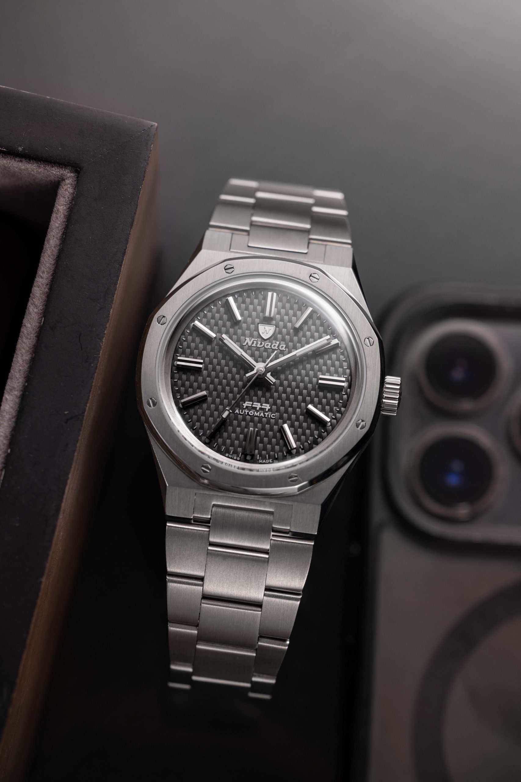 The F77 Stone Dial collection retains its iconic integrated bracelet design and 37 mm case diameter, powered by a Swiss-made SOPROD P024 movement. With its blend of classic and contemporary elements, the F77 continues to captivate watch enthusiasts, marking another milestone in Nivada Grenchen’s journey.